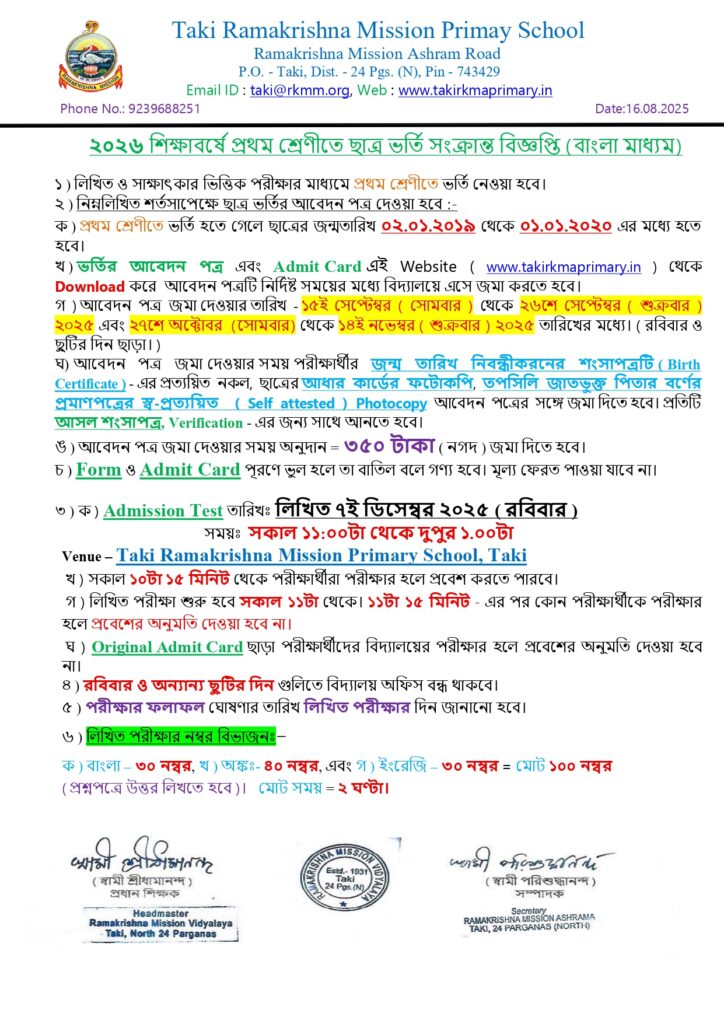 Download Admission Test Form & Admit Card (Class - 2 & 3) for 2026